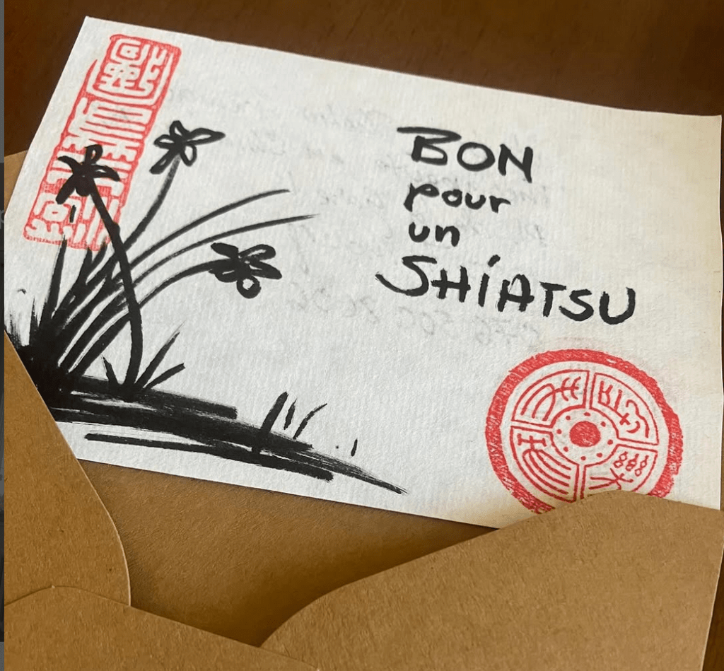 Ci-dessous vous pouvez commander un Bon cadeau pour une séance de Shiatsu. Au delà d’une année à partir de la date du paiement, il se transforme en « Shiatsu suspendu » et sera offert par mes soins à quelqu’un qui en aurait besoin, vous-mêmes si vous le souhaitez.